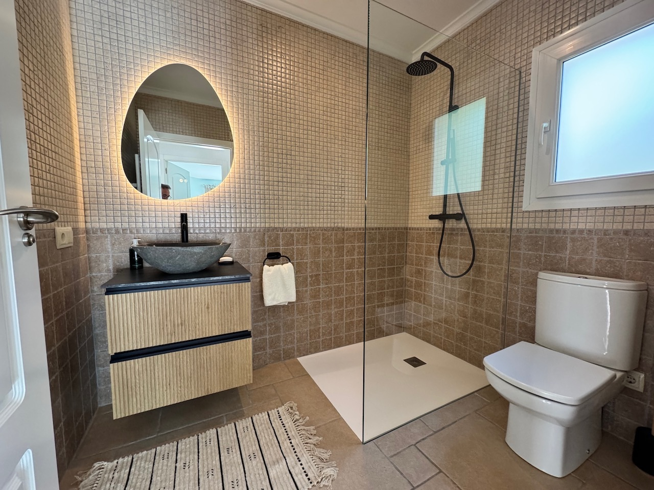 De villa beschikt over een ruime woonkamer met panoramisch uitzicht, een open keuken vernieuwd in 2023 en drie slaapkamers met drie stijlvolle badkamers (waarvan één met bad en douche). Dankzij recente modernisaties geniet je hier van hedendaags wooncomfort met oog voor detail.