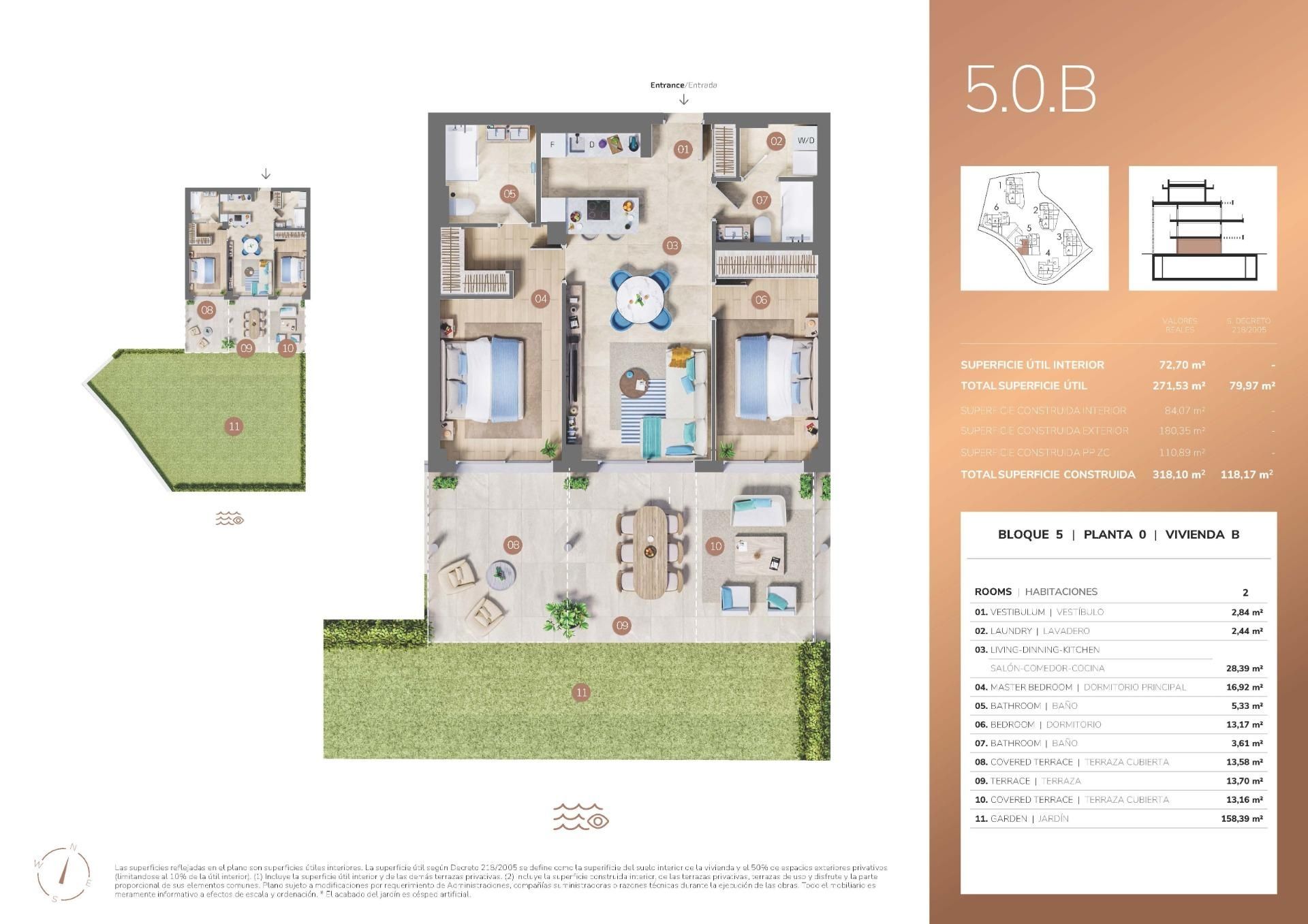 Nieuwbouw appartement met 2 dubbele slaapkamers en 2 badkamers, ideaal voor gezinnen of koppels. Het appartement biedt zeezicht en ligt op korte afstand van het strand.